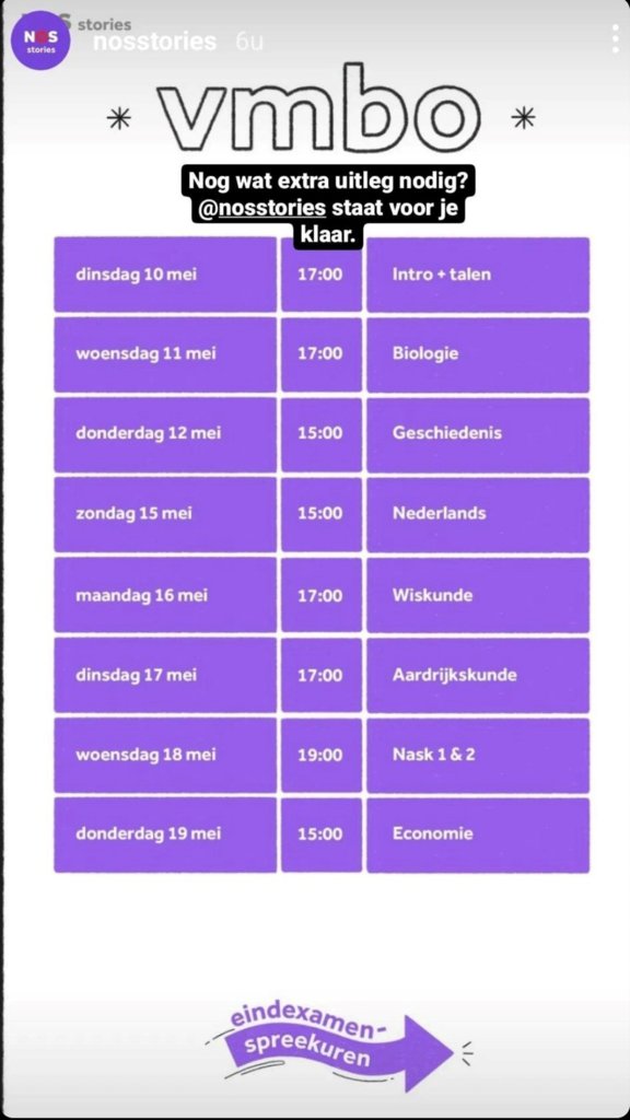 Kun je nog wat uitleg gebruiken voor je examen vmbo, kijk dan eens op @nosstories! Zij staan voor je klaar.
