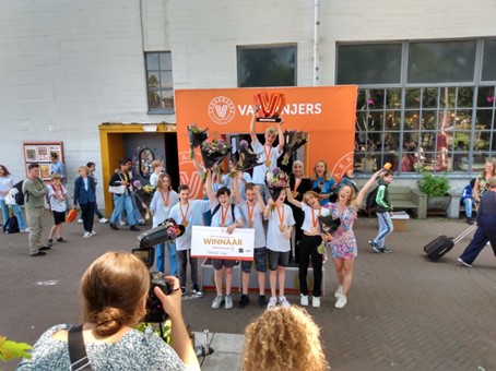 Vanuit de hele klas is het groepje van Maria, Linde en June gekozen om een filmpje met hun idee in te zenden. Met hun originele idee en mooie ontwerp van een heus Van Gogh café voor in het museum werden de meiden uitgenodigd om op 15 juni naar de finale in Eindhoven af te reizen. Vol goede moed en met een beetje spanning zijn we naar Eindhoven vertrokken. Daar werden we ontvangen door de organisatie van Vakkanjers. Er waren 10 finalisten die om beurten hun idee mochten presenteren in een pitch van 2 minuten ten overstaan van de jury.